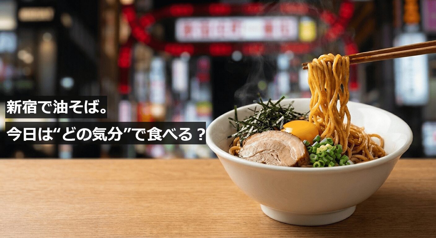 このサイトは「新宿で油そばを食べたい人が、今日の気分で迷わず決められる」ための案内ページです。