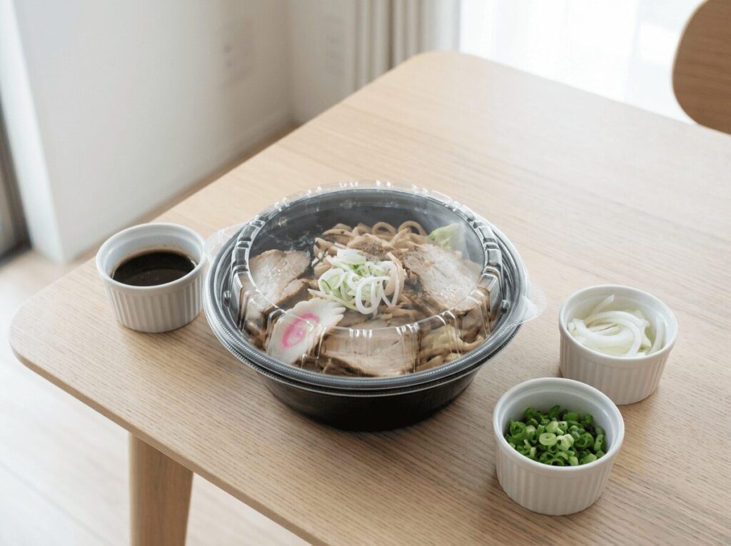 デリバリーで差が出るのは、味そのものより食感と香りです。到着したらまず、フタを少し開けて蒸れを逃がす。次に、箸で麺をほぐしながら底から大きく混ぜる。これだけで「固まり」「味ムラ」がかなり減ります。