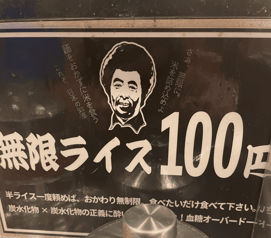 おなかが空いてる場合は100円の無限ライスもオススメです。